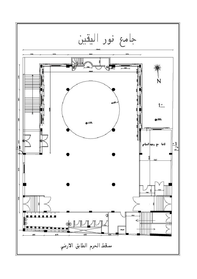 , وهي بمساحة (1000) متر مربع وصمم المسجد بطابق تحت الأرض , والحرم الرئيسي بمساحة