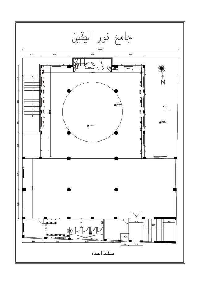 (560) مترمربع , وفيه سدة بمساحة (300) متر مربع ومعهد شرعي في القبو بمساحة (800)