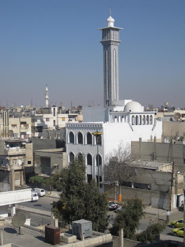 المسجد يتربع على أرض بمساحة /325/ مترمربع يتألف المسجد من قبو بمساحة /325/ مترمربع مخصص للنساء مع حمامات ومواضئ خاصة بالنساء